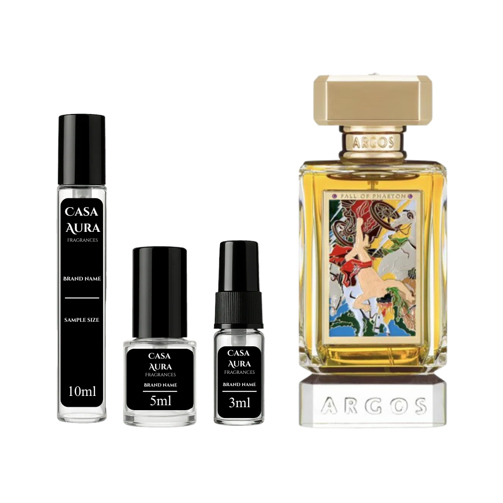 Argos Fall Of Phaeton EDP is a bold and evocative fragrance inspired by the dramatic fall of Phaeton, capturing chaos and daring ambition. Lightning bursts of bergamot, lemon, and spices ignite a smoldering heart of labdanum, lavender, and agarwood, while a rich base of musk, leather, tonka bean, and vanilla brings the legend to life.